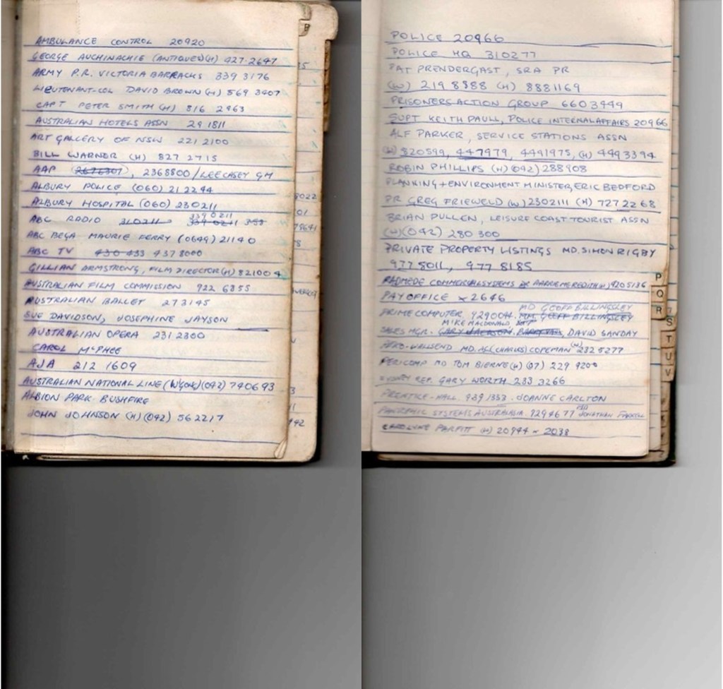 Contact books were gold. Senior reporters had direct lines for politicians and senior executives (no mobile phones then). Mine was a little more low-level….